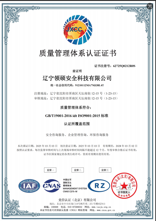 遼寧領碩安全科技有限公司位于遼寧省沈陽市渾南區(qū)天壇南街12-15號,注冊資金300萬。主要經(jīng)營范圍為遼寧省范圍內(nèi)的安全環(huán)保咨詢,生產(chǎn)安全事故應急預案技術服務、企業(yè)雙重預防機制建立、履職能力評估、企業(yè)科研項目安全部分服務等的技術服務機構(gòu)。現(xiàn)有員工12人,其中包括5名遼寧省級安全生產(chǎn)專家。成立于2022年4月18日,在盤錦市成立至今已經(jīng)為30余家企業(yè)提供了安全環(huán)保技術咨詢。 業(yè)務范圍包括:技術服務、技術開發(fā)、技術咨詢、技術交流、技術轉(zhuǎn)讓、技術推廣,安全咨詢服務,環(huán)保咨詢服務,標準化服務,企業(yè)管理咨詢,科技中介服務,工程管理服務,特種作業(yè)...查看更多